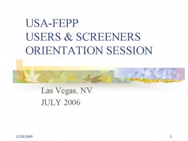 USA-FEPP USERS SCREENERS ORIENTATION SESSION