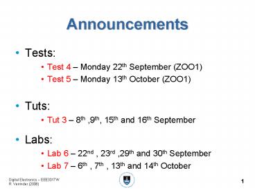 • Lab 6 22nd , 23rd ,29th and 30th September