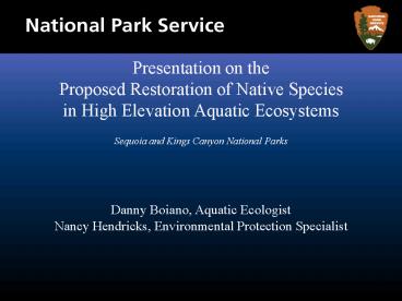 high elevation lakes and streams. - To restore naturally functioning aquatic