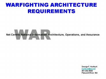 1WARFIGHTING ARCHITECTURE REQUIREMENTS