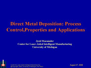 Title: Direct Metal Deposition: Process Control,Properties and Applications