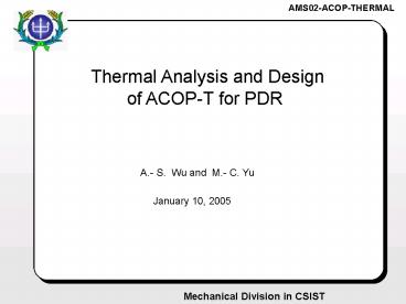 1 Thermal Analysis and Design of ACOP-T for PDR