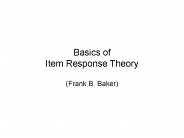Basics of Item Response Theory PowerPoint PPT Presentation