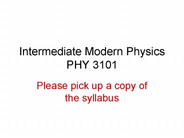 Intermediate Modern Physics PHY 3101 PowerPoint PPT Presentation