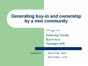 Generating buyin and ownership by a new community PowerPoint PPT Presentation