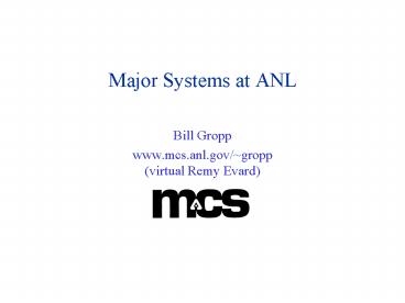 Title: Major Systems at ANL