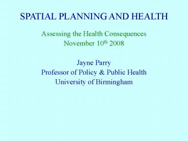 1SPATIAL PLANNING AND HEALTH Assessing the Health