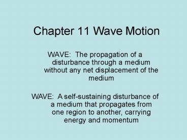 Title: Chapter 11 Wave Motion