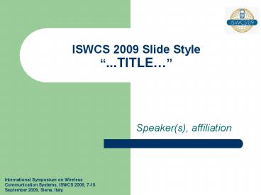 <Notice: Removed> ISWCS 2009 Slide Style PowerPoint PPT Presentation