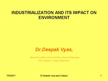 Title: INDUSTRIALIZATION AND ITS IMPACT ON ENVIRONMENT