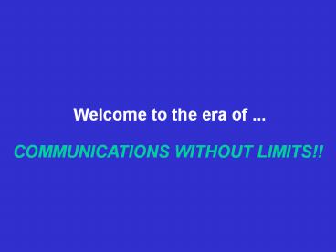 COMMUNICATIONS WITHOUT LIMITS!!