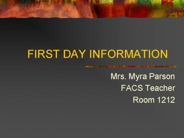 Title: FIRST DAY INFORMATION