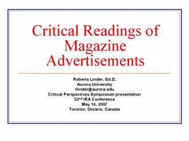 <Notice: Removed> Critical Readings of Magazine Advertisements PowerPoint PPT Presentation