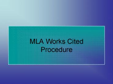 MLA Works Cited Procedure PowerPoint PPT Presentation