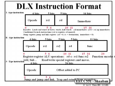 <Notice: Removed> DLX Instruction Format PowerPoint PPT Presentation