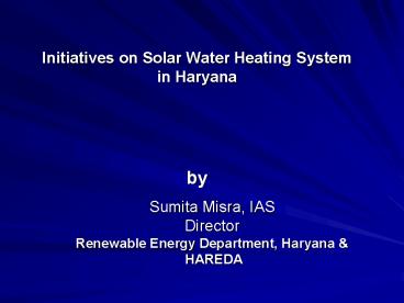 Title: Initiatives on Solar Water Heating System in Haryana by