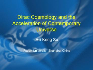 Dirac Cosmology and the Acceleration of Contemporary Universe PowerPoint PPT Presentation