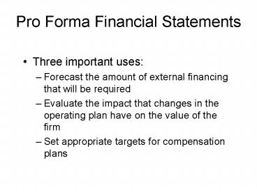 Title: Pro Forma Financial Statements