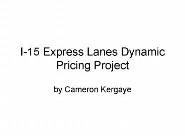 I15 Express Lanes Dynamic Pricing Project PowerPoint PPT Presentation