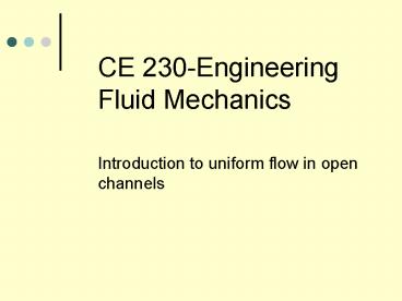 CE 230Engineering Fluid Mechanics PowerPoint PPT Presentation