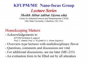 1KFUPM/ME Nano-focus Group Lecture Series Sheikh