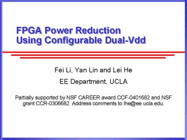 FPGA Power Reduction Using Configurable DualVdd PowerPoint PPT Presentation