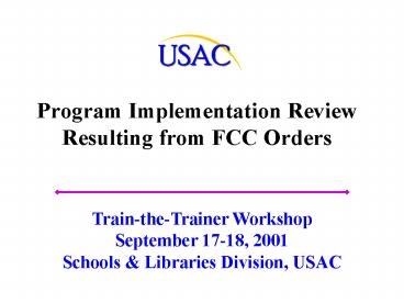 Program Implementation Review Resulting from FCC Orders PowerPoint PPT Presentation