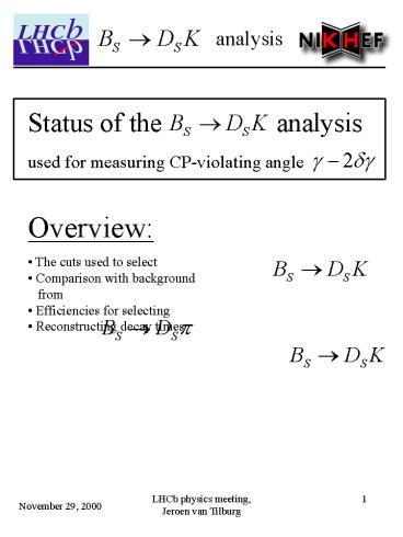 25 -min. RICH probab. 0.18 - Preselect DS and BS vertices -max. ?mDs 25