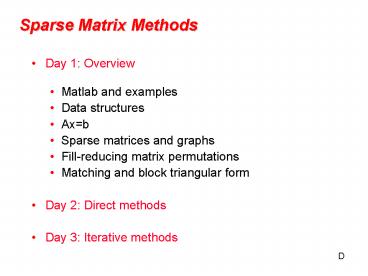 Sparse Matrix Methods PowerPoint PPT Presentation