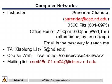 - Mailing list cse498n-01-sp04_at_listserv.nd.edu