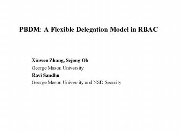 PBDM: A Flexible Delegation Model in RBAC PowerPoint PPT Presentation