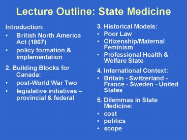 Lecture Outline: State Medicine PowerPoint PPT Presentation