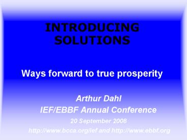 Title: INTRODUCING SOLUTIONS Ways forward to true prosperity