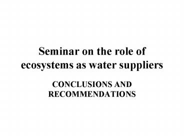 Seminar on the role of ecosystems as water suppliers PowerPoint PPT Presentation