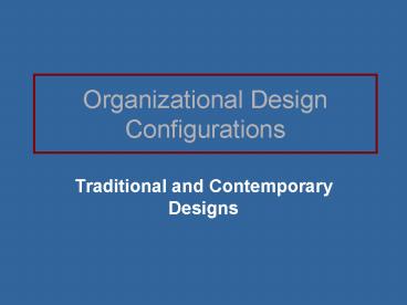 Title: Organizational Design Configurations