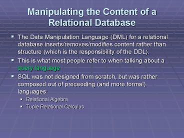 Manipulating the Content of a Relational Database PowerPoint PPT Presentation