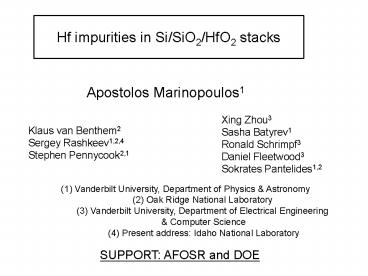Title: Hf impurities in SiSiO2HfO2 stacks