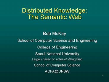 <Notice: Removed> Distributed Knowledge: The Semantic Web PowerPoint PPT Presentation