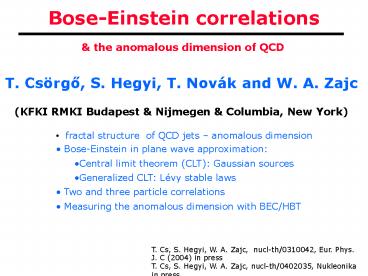 <Notice: Removed> BoseEinstein correlations PowerPoint PPT Presentation
