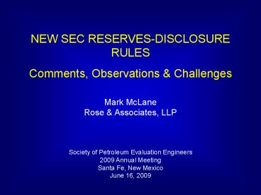 <Notice: Removed> New SEC Reserves-Disclosure Rules PowerPoint PPT Presentation