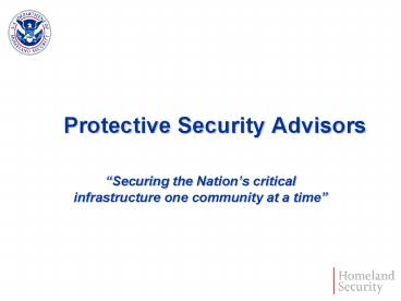 <Notice: Removed> Protective Security Advisors PowerPoint PPT Presentation