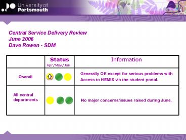 Title: Central Service Delivery Review June 2006 Dave Rowen SDM