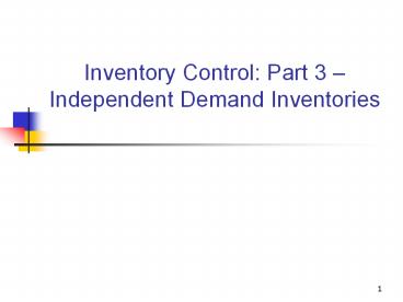 Inventory Control Part 3 Independent Demand