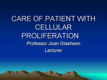 Title: CARE OF PATIENT WITH CELLULAR PROLIFERATION