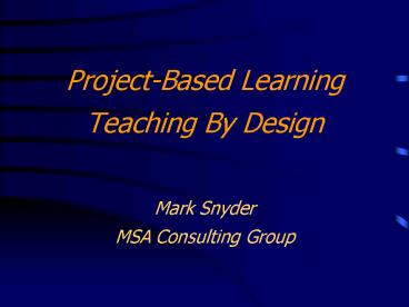 Title: ProjectBased Learning Teaching By Design