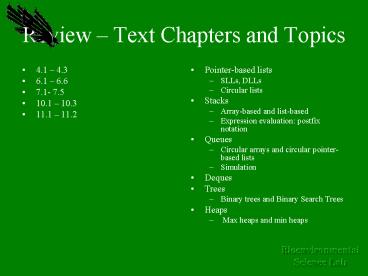 Review Text Chapters and Topics PowerPoint PPT Presentation