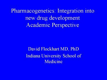Pharmacogenetics: Integration into new drug development Academic Perspective PowerPoint PPT Presentation