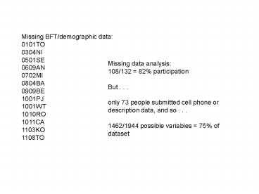 <Notice: Removed> Missing BFT/demographic data: PowerPoint PPT Presentation