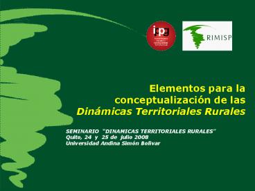 DINAMICAS TERRITORIALES RURALES Quito, 24 y