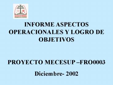 OBJETIVOS PROYECTO MECESUP FRO0003 Diciembre-